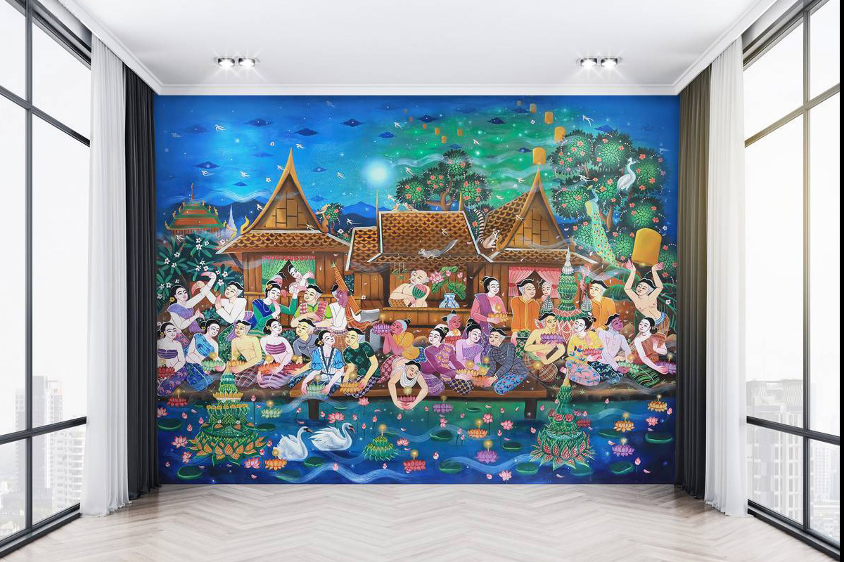 แต่งเติมกลิ่นอายไทยแท้ให้ทุกมุมร้าน บ้าน หรือรีสอร์ท ด้วย วอลเปเปอร์ภาพพิมพ์ชุดภาพประเพณีไทยและวัฒนธรรมไทย ถ่ายทอดความงดงามของประเพณีสำคัญ เช่น ลอยกระทง สงกรานต์ งานบุญต่างๆ ผ่านลายเส้นและสีสันในสไตล์ภาพวาดอย่างประณีต สร้างบรรยากาศที่อบอุ่น อ่อนช้อย และเต็มไปด้วยเอกลักษณ์ความเป็นไทย ให้ทุกมุมดูมีเรื่องราวและทรงคุณค่า